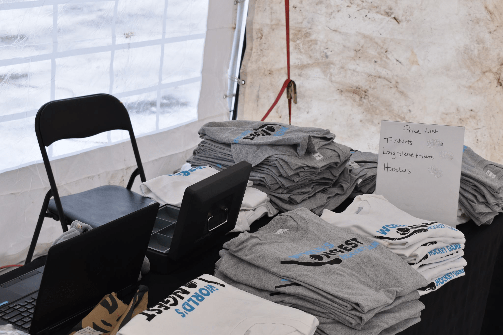 Limited merchandise will be available at a first come first serve basis. A portion of all merchandise sales goes toward the cause of the World’s Longest Hockey Game.